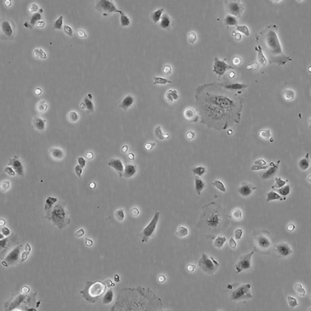 待細(xì)胞生長(zhǎng)狀態(tài)良好時(shí),可進(jìn)行細(xì)胞凍存。下面T25瓶為例;1.細(xì)胞凍存時(shí),棄去培養(yǎng)基后,PBS清洗瓶底1-2次后加入1ml胰酶,細(xì)胞變圓脫落后,加入2ml完全培養(yǎng)基終止消化,可使用血球計(jì)數(shù)板計(jì)數(shù)。2.1000RPM離心5分鐘去掉上清。用血清重懸浮,加DMSO至最終濃度為10%。加入DMSO后迅速混勻,按每1ml的數(shù)量分配到凍存管中,注意凍存管做好標(biāo)識(shí)。本公司按每個(gè)凍存管細(xì)胞數(shù)目大于1X106個(gè)細(xì)胞凍存。3.將凍存管置于程序降溫盒中,放入-80度冰箱,至少2個(gè)小時(shí)以后轉(zhuǎn)入液氮灌儲(chǔ)存。記錄凍存管位置以便下次拿取。 |