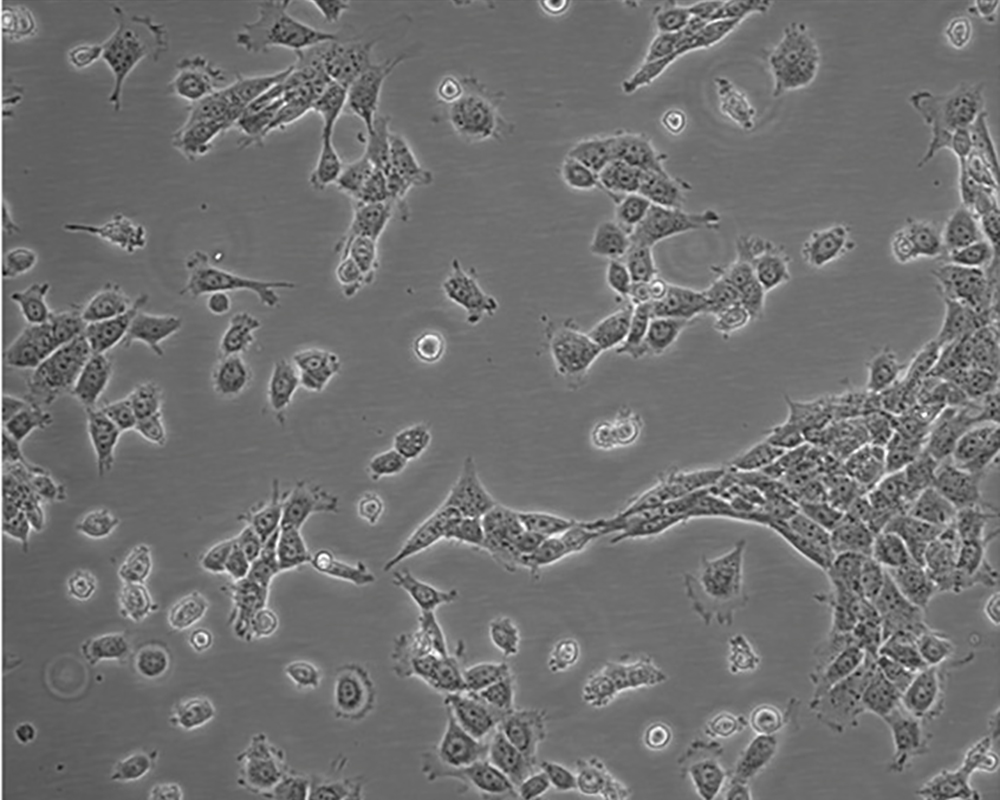 如果細胞密度達80%-90%,即可進行傳代培養。1. 棄去培養上清,用不含鈣、鎂離子的PBS潤洗細胞1-2次。2. 加2ml消化液(0.25%Trypsin-0.53mM EDTA)于培養瓶中,置于37℃培養箱中消化1-2分鐘,然后在顯微鏡下觀察細胞消化情況,若細胞大部分變圓并脫落,迅速拿回操作臺,輕敲幾下培養瓶后加少量培養基終止消化。3. 按6-8ml/瓶補加培養基,輕輕打勻后吸出,在1000RPM條件下離心4分鐘,棄去上清液,補加1-2mL培養液后吹勻。4. 將細胞懸液按1:2到1:5的比例分到新的含8ml培養基的新皿中或者瓶中 |