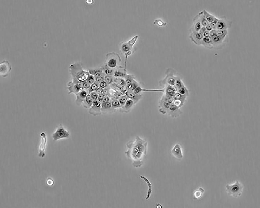 :待細胞生長狀態(tài)良好時,可進行細胞凍存。下面T25瓶為例;1.細胞凍存時,棄去培養(yǎng)基后,PBS清洗瓶底1-2次后加入1ml胰酶,細胞變圓脫落后,加入2ml完全培養(yǎng)基終止消化,可使用血球計數(shù)板計數(shù)。2.1000RPM離心5分鐘去掉上清。用血清重懸浮,加DMSO至最終濃度為10%。加入DMSO后迅速混勻,按每1ml的數(shù)量分配到凍存管中,注意凍存管做好標(biāo)識。本公司按每個凍存管細胞數(shù)目大于1X106個細胞凍存。3.將凍存管置于程序降溫盒中,放入-80度冰箱,至少2個小時以后轉(zhuǎn)入液氮灌儲存。記錄凍存管位置以便下次拿取。 |