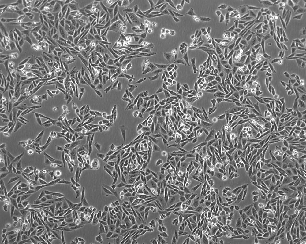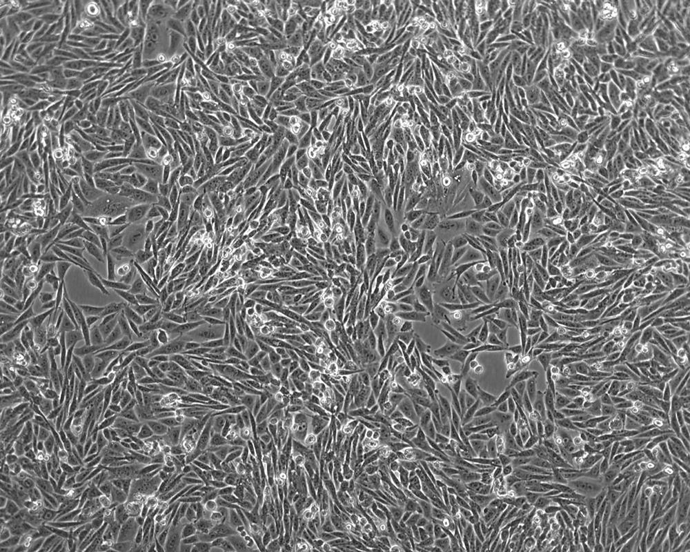 如果細胞密度達80%-90%,即可進行傳代培養。1. 棄去培養上清,用不含鈣、鎂離子的PBS潤洗細胞1-2次。2. 加2ml消化液(0.25%Trypsin-0.53mM EDTA)于培養瓶中,置于37℃培養箱中消化1-2分鐘,然后在顯微鏡下觀察細胞消化情況,若細胞大部分變圓并脫落,迅速拿回操作臺,輕敲幾下培養瓶后加少量培養基終止消化。3. 按6-8ml/瓶補加培養基,輕輕打勻后吸出,在1000RPM條件下離心4分鐘,棄去上清液,補加1-2mL培養液后吹勻。4. 將細胞懸液按1:2到1:5的比例分到新的含8ml培養基的新皿中或者瓶中 |